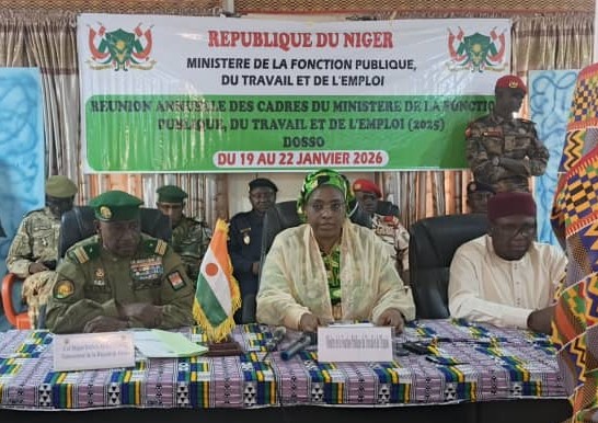 La cérémonie d’ouverture de la Réunion annuelle des cadres du Ministère de la Fonction Publique, du Travail et de l’Emploi s’est tenue ce lundi 19 janvier 2026 dans la région de Dosso, sous la présidence de Madame Aissatou Abdoulaye Tondi, Ministre de la Fonction Publique, du Travail et de l’Emploi. Cette rencontre, consacrée à l’année 2025, constitue un cadre stratégique d’évaluation, de concertation et de mobilisation des cadres du Ministère.