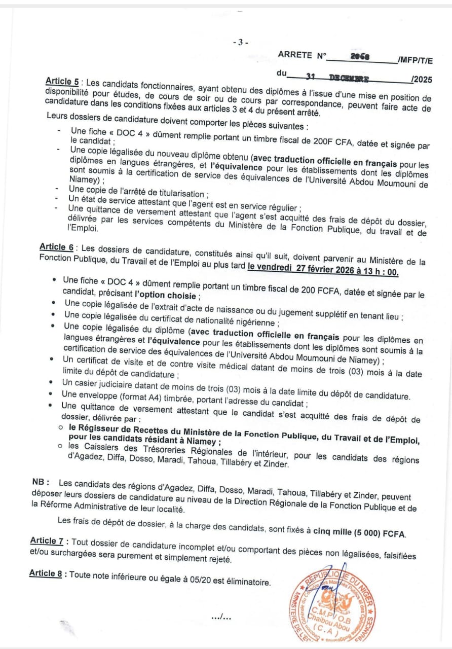âžĄïž Pour les rĂ©gions (Agadez, Diffa, Dosso, Maradi, Tahoua, TillabĂ©ry, Zinder), les dossiers peuvent ĂȘtre dĂ©posĂ©s au niveau des Directions RĂ©gionales de la Fonction Publique et de la RĂ©forme Administrative.