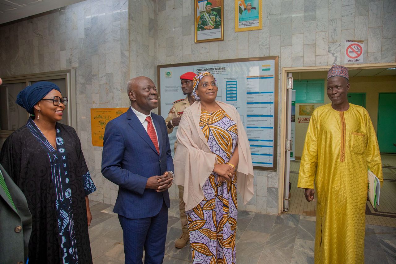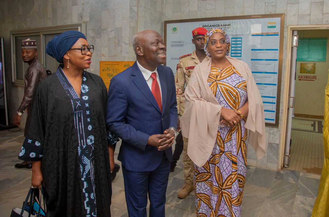 Madame la Ministre de la Fonction Publique, du Travail et de l’Emploi, Aissatou Abdoulaye Tondi, a effectué une immersion dans le hall du département ministériel, en compagnie de Monsieur Gilbert F. Houngbo, Directeur général du BIT.