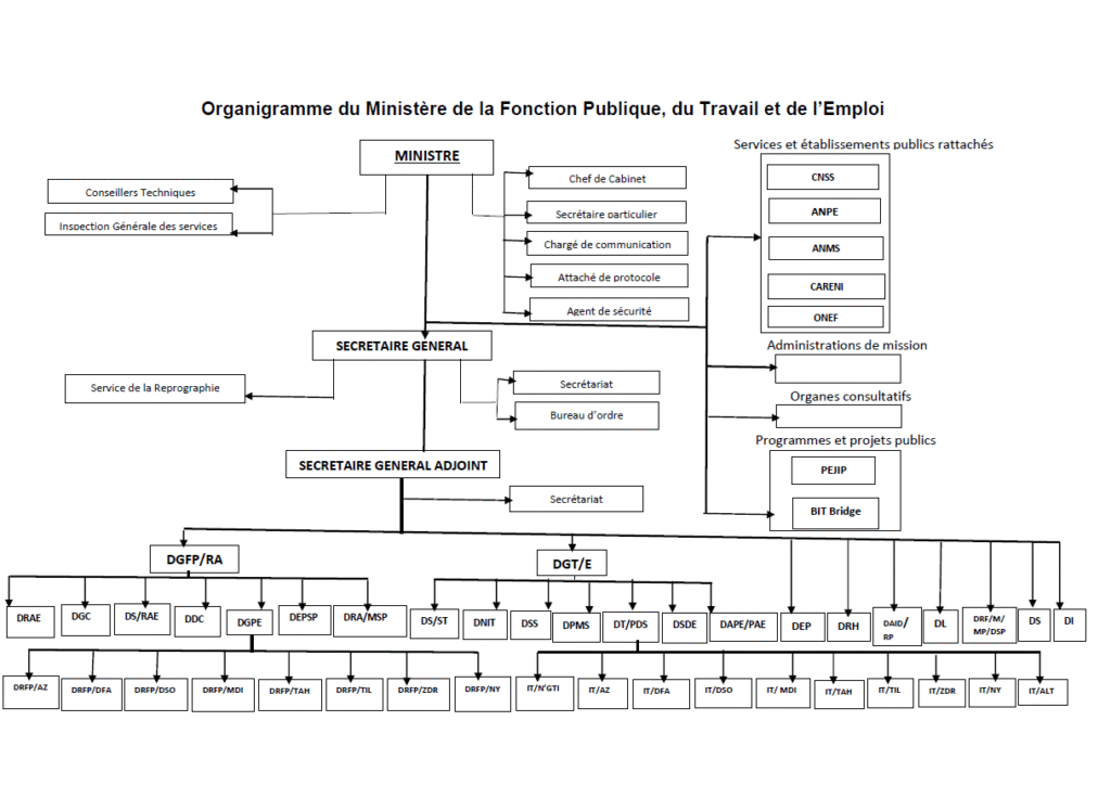 Organigramme du Ministère de la Fonction Publique, du Travail et de l’Emploi